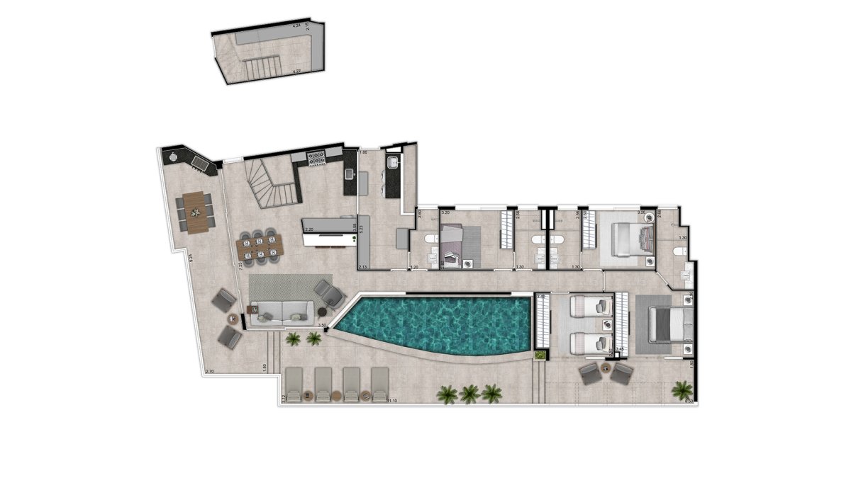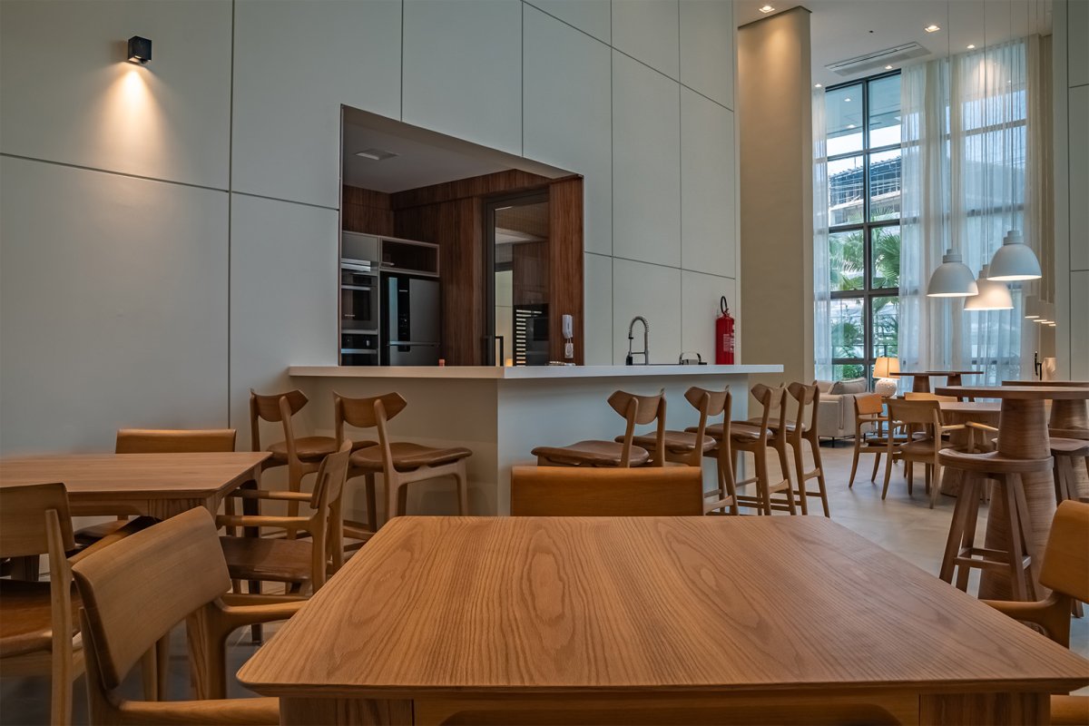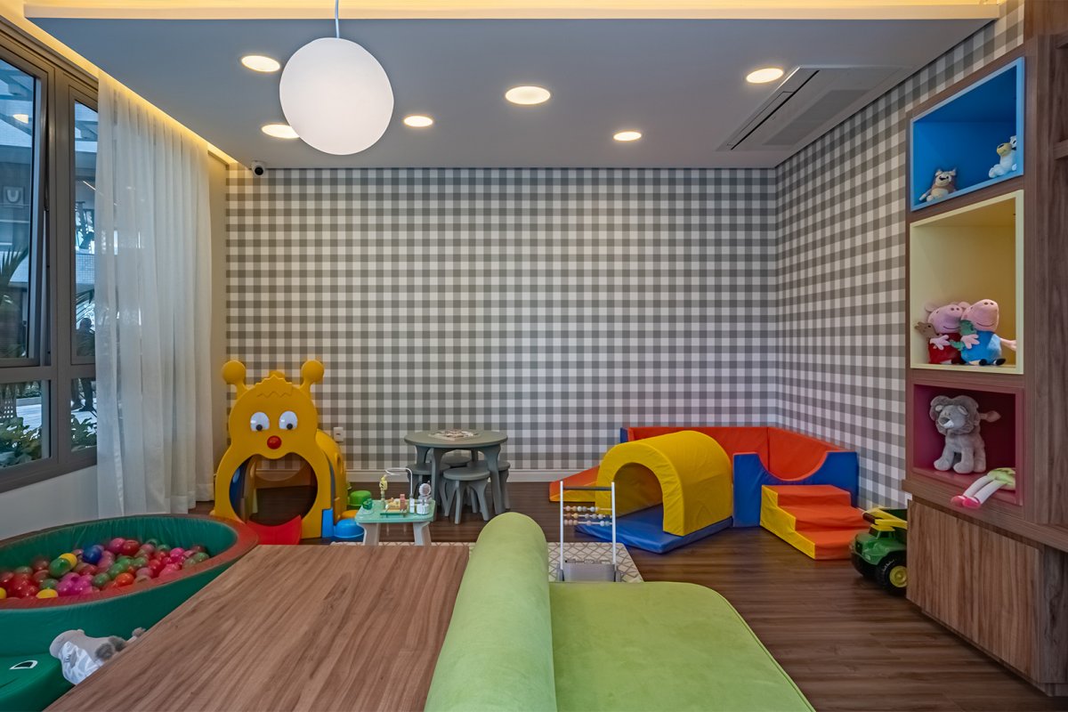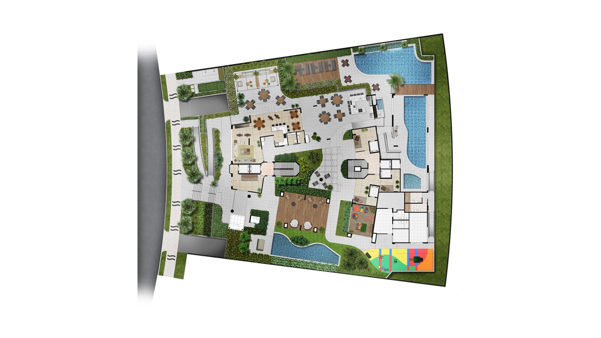 Piscina coberta adulto, piscina coberta infantil, piscina recreativa, solário, salão de festas, churrasqueira gourmet com forno de pizza, playground, brinquedoteca, área de estar, praça de contemplação com espelho d’ água e área de estar com pergolado.