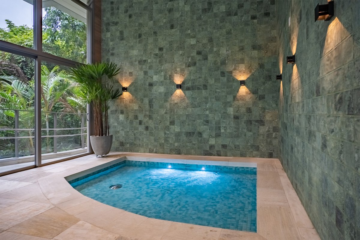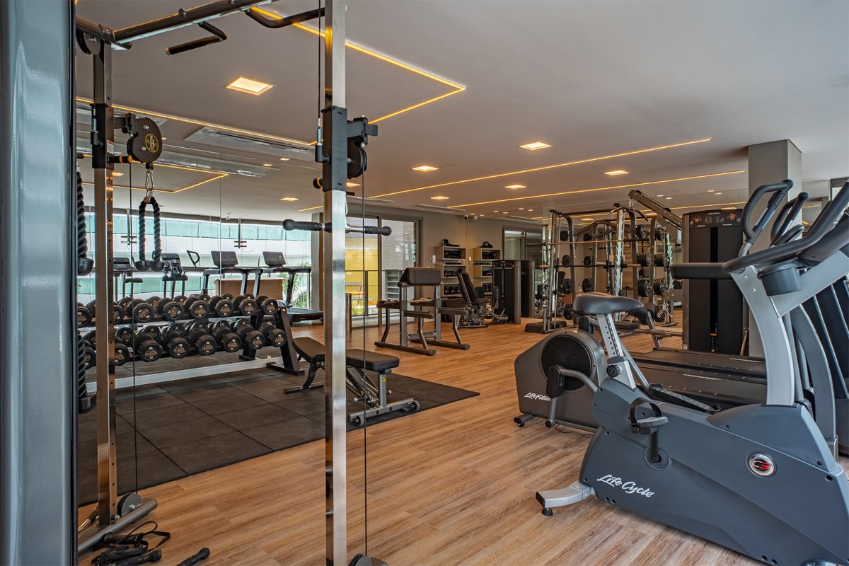 Fitness, área de descanso, sauna, ducha e salão de jogos.