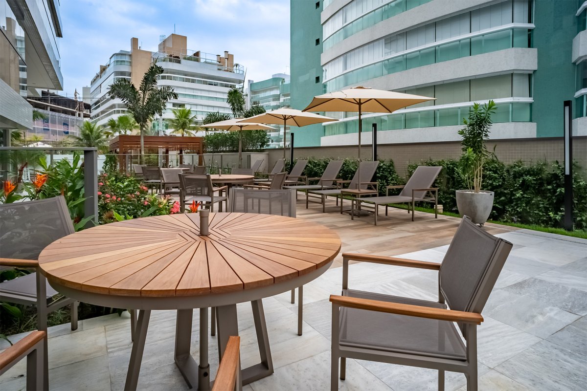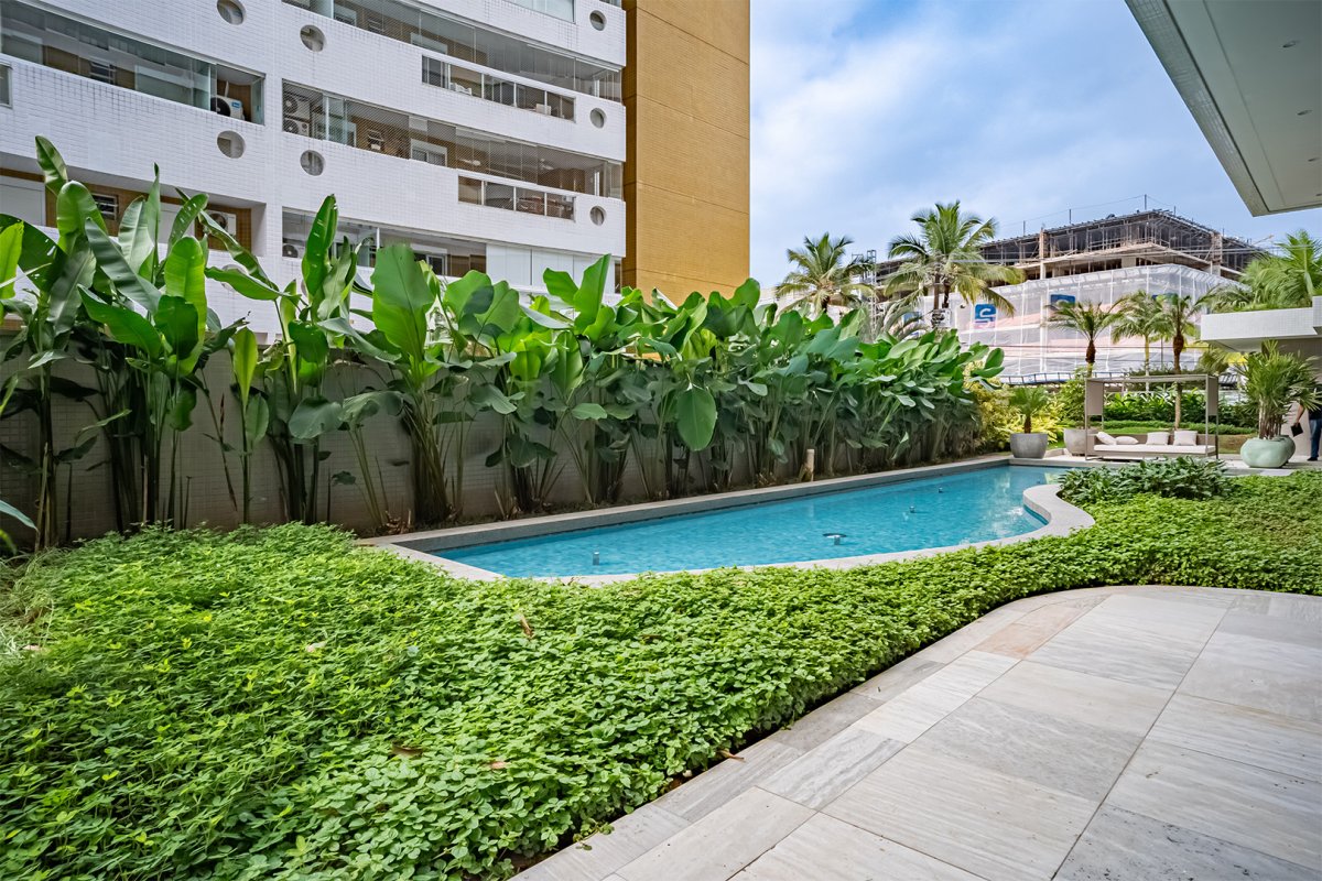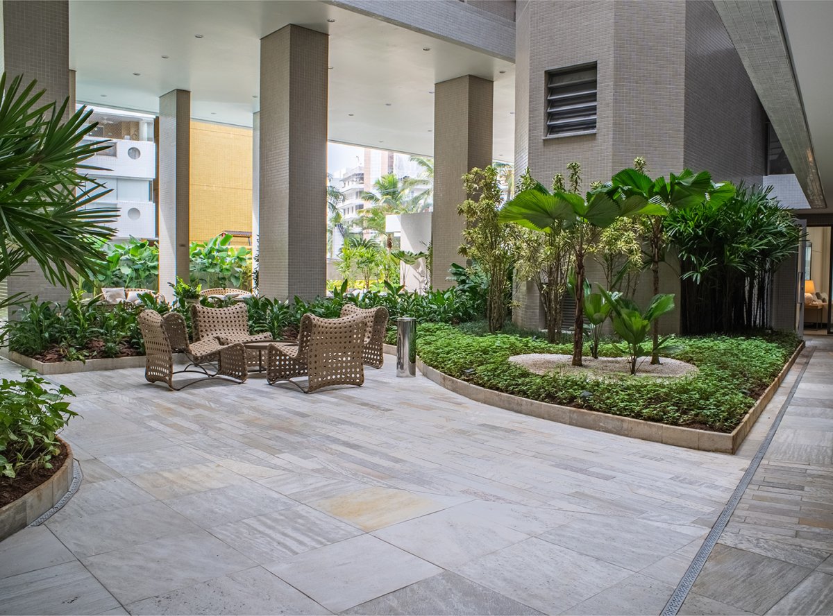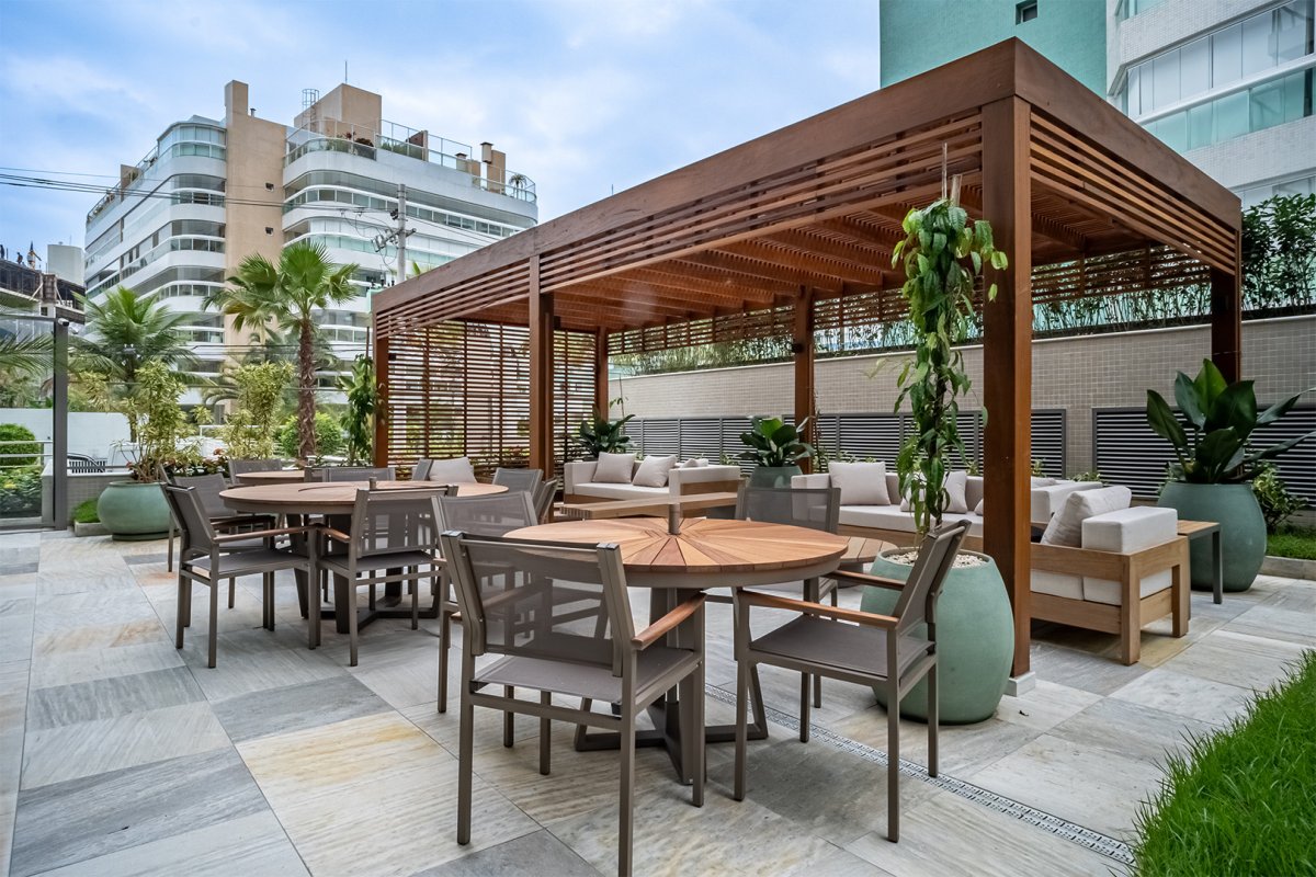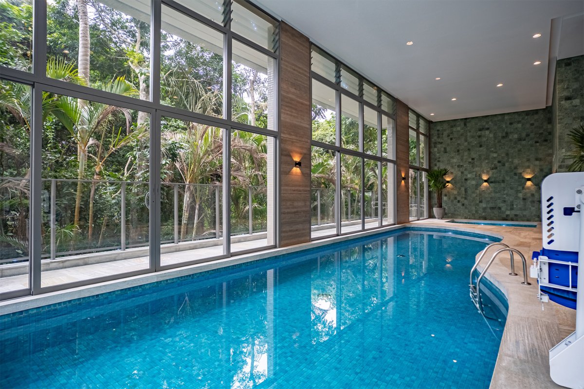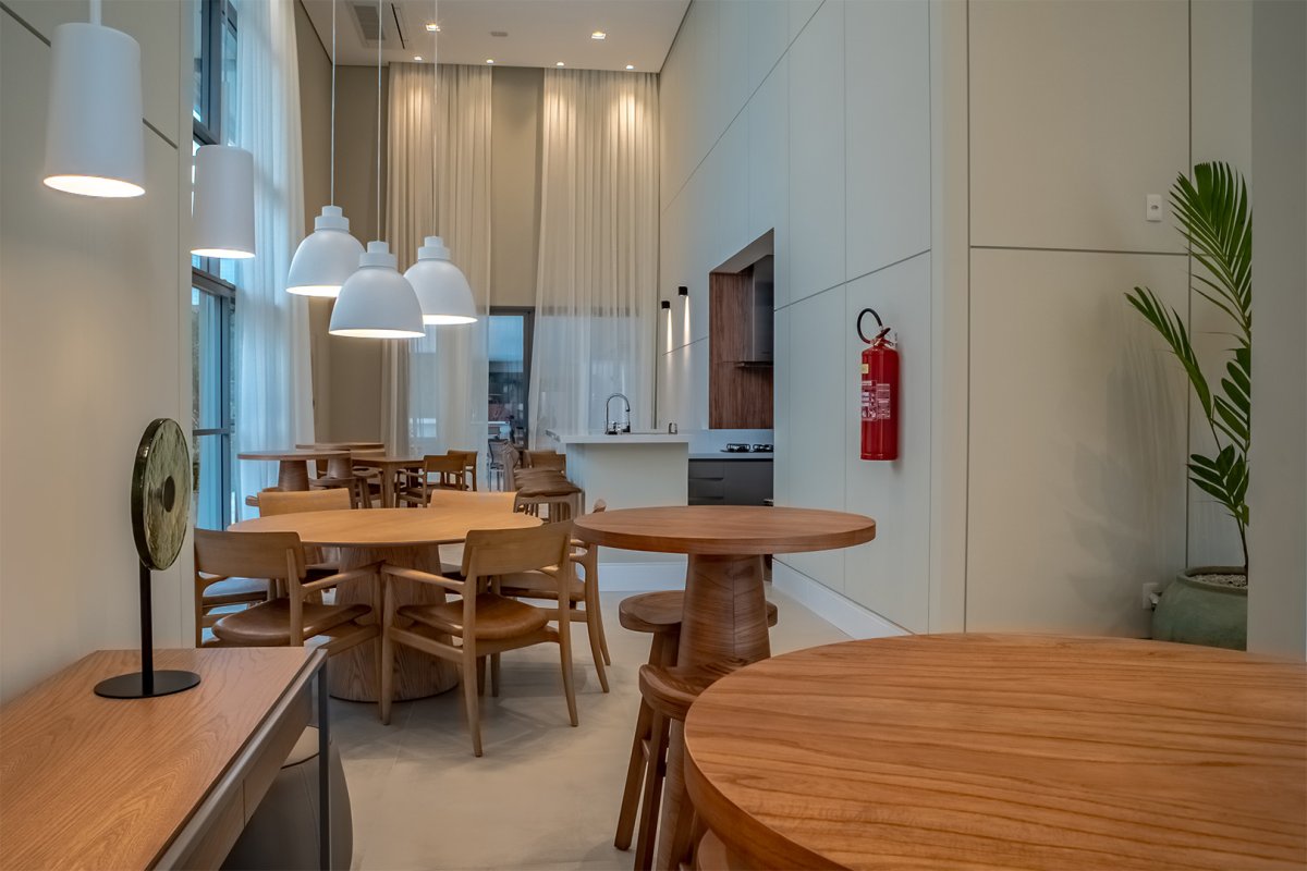 Piscina coberta adulto, piscina coberta infantil, piscina recreativa, solário, salão de festas, churrasqueira gourmet com forno de pizza, playground, brinquedoteca, área de estar, praça de contemplação com espelho d’ água e área de estar com pergolado.