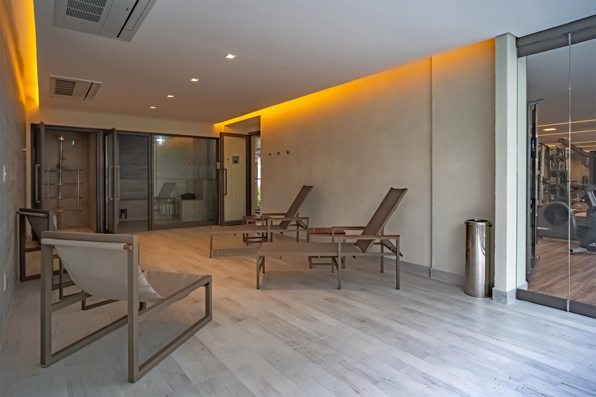 Fitness, área de descanso, sauna, ducha e salão de jogos.