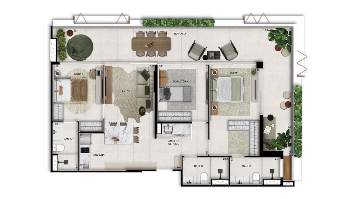 Apartamento de 116 m² com 3 dorms. (2 suítes)