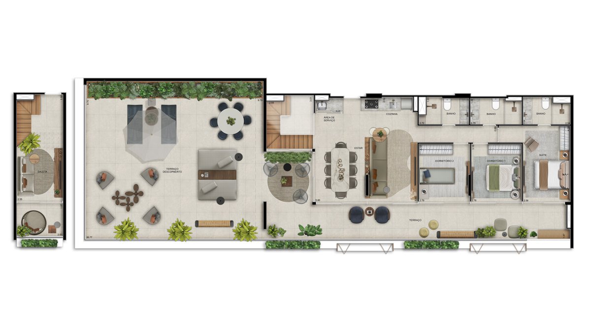 Cobertura de 250 m² com 3 dorms. (1 suítes)